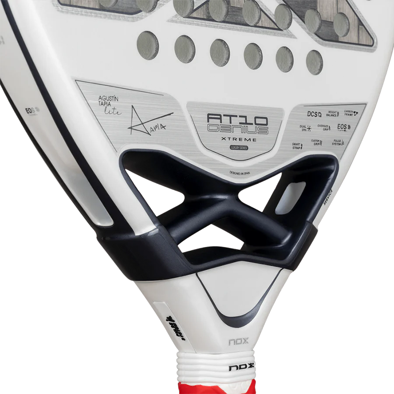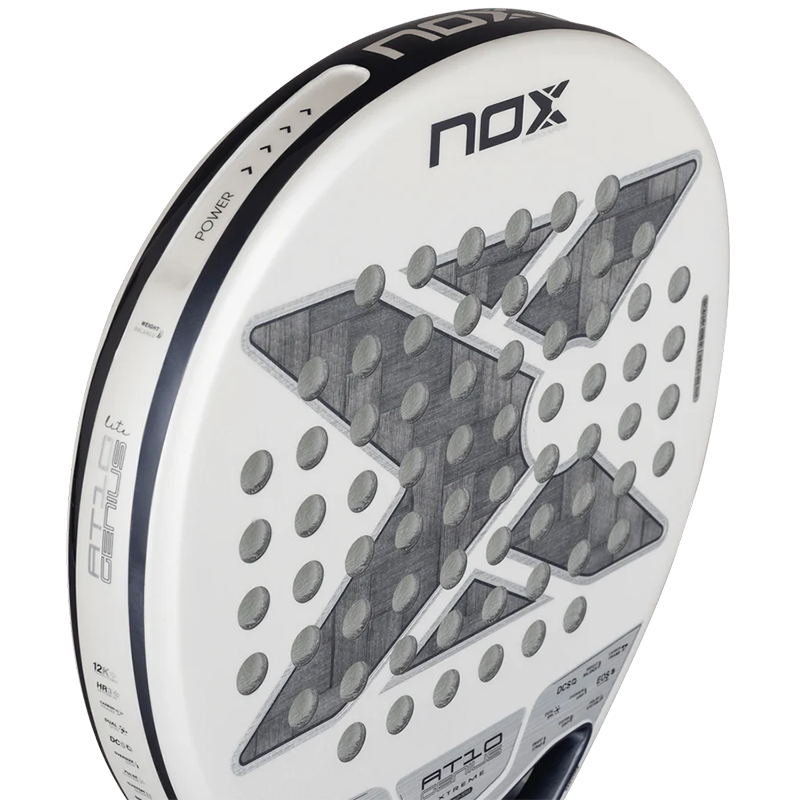 La Pala Nox AT10 Genius 12K Alum Xtrem Lite by Agustin Tapia 2026 combina potencia, control y ligereza para un rendimiento superior. Con un peso de 355 a 365 gramos, ofrece excelente manejabilidad sin perder las características de la gama AT10. Incorpora el sistema Weight Balance para un equilibrio óptimo, y su superficie Dual Spin maximiza el efecto en cada golpe. Fabricada en carbono 12K Alum Xtrem, garantiza rigidez, durabilidad y estabilidad térmica, ideal para jugadores que exigen precisión y dinamismo en su juego. El carbono 12K Alum Xtrem aporta una superficie más rígida, uniforme y resistente a cambios de temperatura, garantizando un rendimiento estable. Su núcleo HR3 White EVA de baja densidad ofrece un tacto blando y un control preciso, ideal para jugadores que buscan ligereza y sensibilidad.