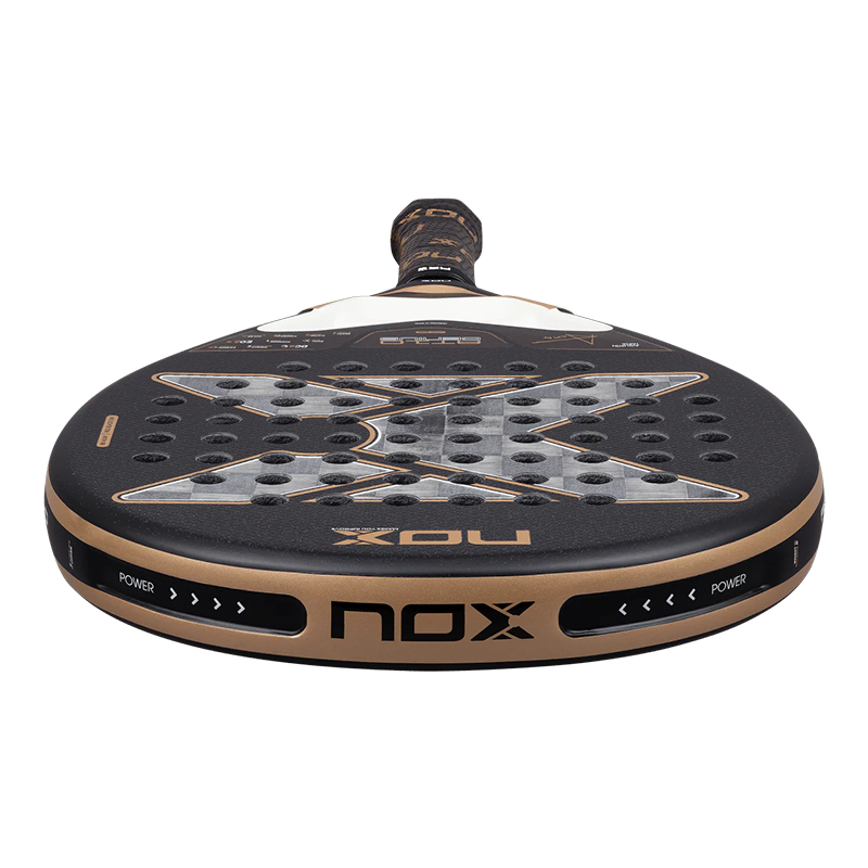La nueva Pala Nox AT10 Genius 18K Alum 2026, diseñada con la colaboración de Agustín Tapia, incorpora el innovador sistema Weight Balance para ajustar el balance según tu estilo de juego, garantizando una experiencia totalmente personalizada. Su exclusivo acabado Chromic Paint ofrece una apariencia visual armoniosa y dinámica que destaca en la pista. La superficie Dual Spin, con textura 3D y arena de sílice, optimiza el efecto en cada golpe, potenciando el control y la precisión. Esta pala redefine el rendimiento para jugadores que exigen máxima tecnología y adaptabilidad. Esta AT10 Genius 18K Alum 2026 incorpora núcleo Multilayered Black EVA que equilibra salida de bola y potencia, junto al sistema Weight Balance de contrapesos intercambiables para personalizar peso y balance según el jugador.