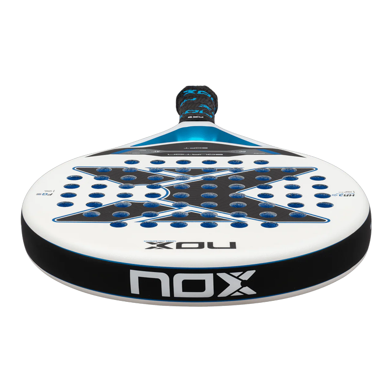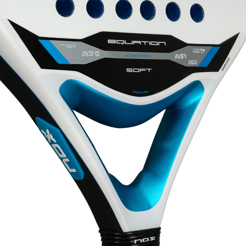 La pala Nox EQUATION Soft 2026 ofrece un tacto suave gracias a su núcleo específico, ideal para jugadores que buscan una mayor salida de bola y comodidad en golpes prolongados. Su balance medio, marco de carbono y sistema antivibraciones proporcionan control y protección ante lesiones sin sacrificar rendimiento. Las caras rugosas Exclusive Spin facilitan la creación de efectos para un juego más estratégico. Además, el sistema Smartstrap® permite cambiar el cordón de seguridad fácilmente, garantizando higiene, seguridad y personalización.