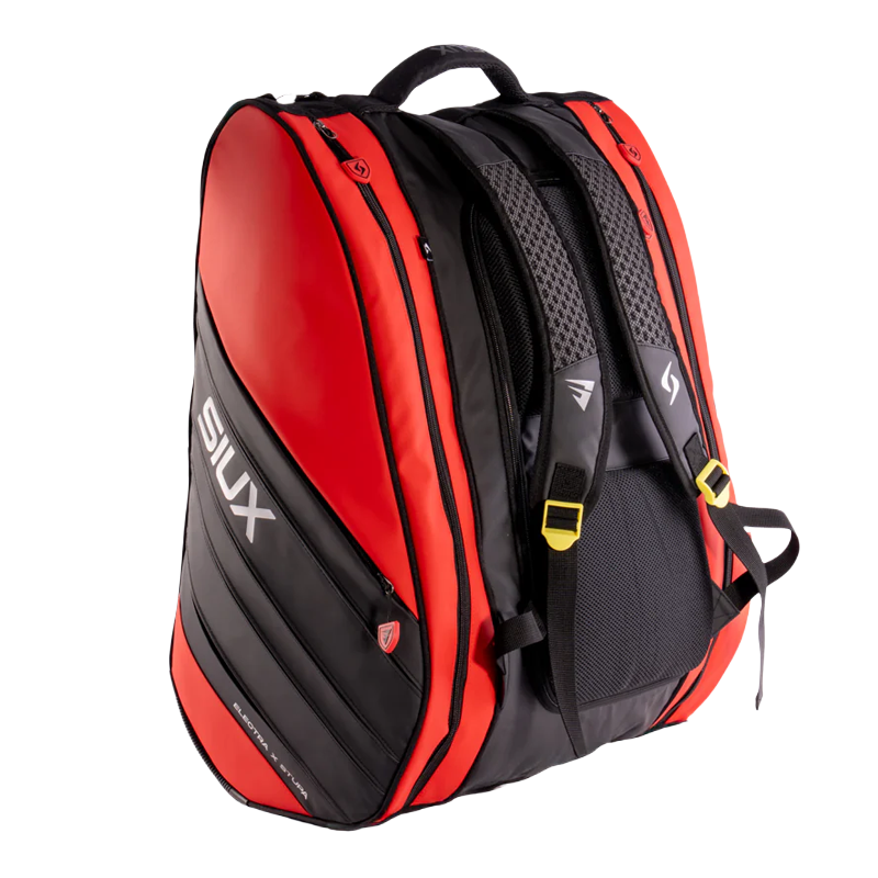 Cada detalle del Electra Stupa está pensado para el rendimiento profesional. El sistema de aislamiento térmico mantiene tus palas en condiciones óptimas, mientras que la distribución inteligente de compartimentos permite organizar todo tu equipamiento con precisión. La ergonomía avanzada del sistema de transporte reduce la fatiga, permitiéndote concentrarte en lo que realmente importa: tu juego. Una pieza esencial para quienes no aceptan compromisos en su equipamiento.