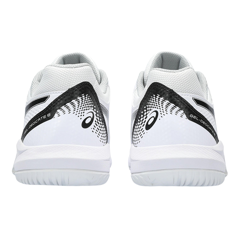 Le Chaussures Asics Gel-Dedicate 8 Blanc/Noir, conçu pour offrir une bonne stabilité et une sensation de flexibilité pendant le jeu.
