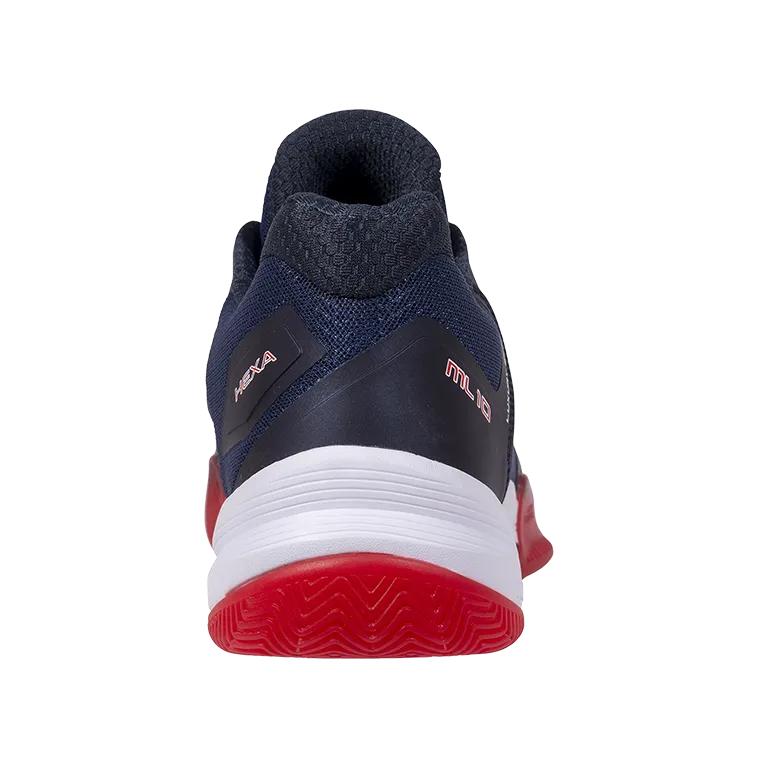 Scarpe Nox ML10 Hexa 2023 in blu offre maggiore stabilità durante il gioco all'interno del Campo, Include rinforzi che prevengono gli infortuni e la suola a spina di pesce offre una maggiore aderenza.