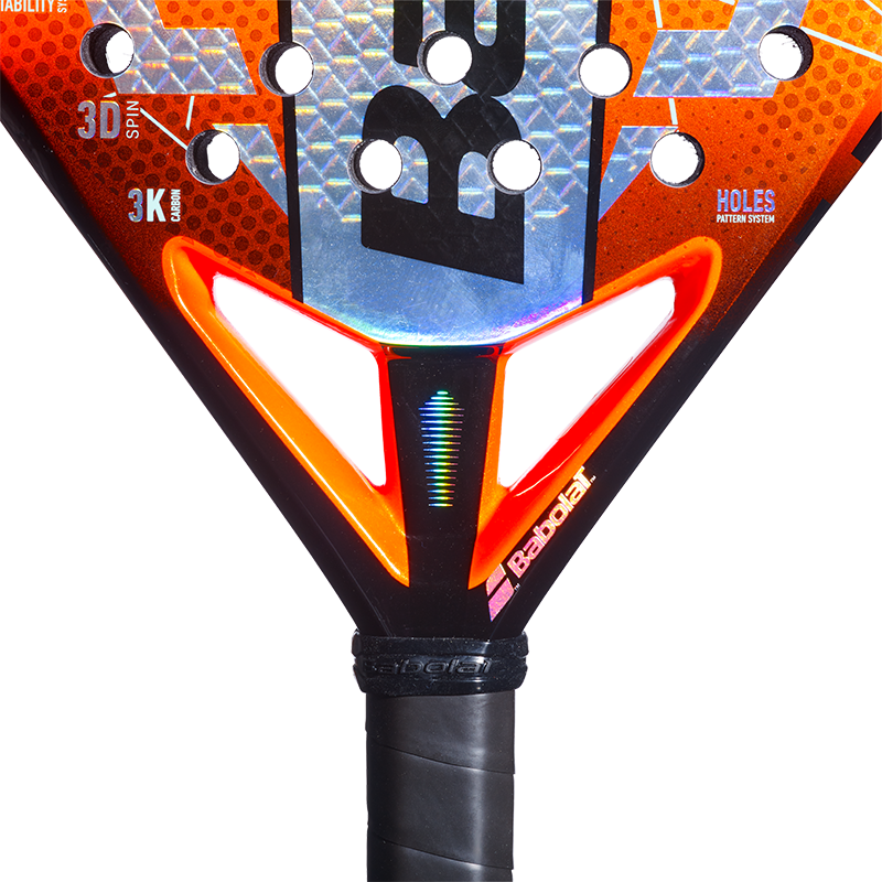 Il sistema HPS (Holes Pattern System) ottimizza la distribuzione e la dimensione dei fori in base alla forma dei fori la racchetta per aumentare la trasmissione della potenza e la precisione nella risposta dei colpi, mentre la tecnologia 3D Spin incorpora rilievi sulla superficie del la racchetta per aumentare la rotazione della pallina. L'esclusivo design a cuore la racchetta, Con la sua barra centrale rinforzata, migliora la stabilità e fornisce maggiore potenza e maggiore controllo di palla.