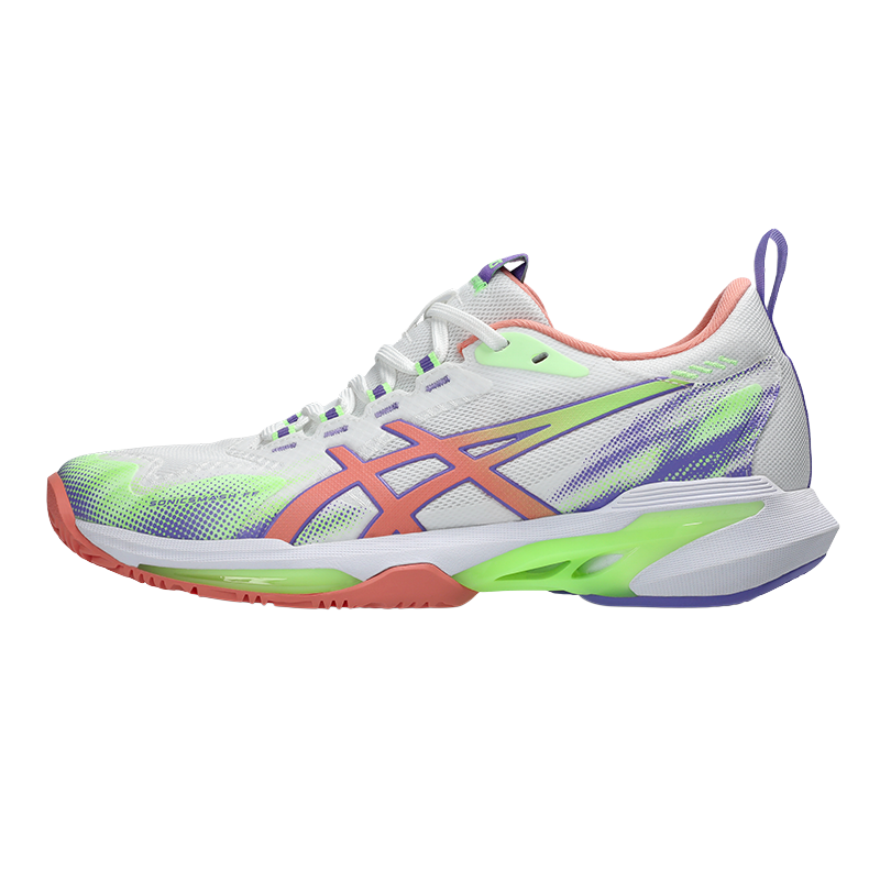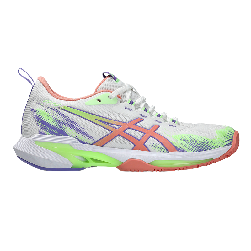 Scarpe Asics SonicSmash FF, sviluppato in collaborazione con la giocatrice professionista Jessica Castelló, per giocatori offensivi che danno priorità alla velocità e all'agilità. La tecnologia X-GROOVE™ offre flessibilità e trazione superiori nelle curve multidirezionali. Il motivo a spina di pesce diagonale sulla suola garantisce un grip avanzato, mentre i punti di articolazione circolari nell'avampiede facilitano la rotazione del piede e la stabilità nei movimenti esplosivi. Design ultraleggero per le massime prestazioni. Con tecnologia FLYTEFOAM™ nell'intersuola che unisce leggerezza e ammortizzazione superiore. La tecnologia SPEEDTRUSS™ fornisce una reattività eccezionale, consentendo accelerazioni esplosive verso il colpo successivo. La parte superiore di Leggins Traspirante mantiene i piedi freschi e asciutti durante il gioco. Ingegneria premium per i giocatori che richiedono prestazioni senza compromessi.