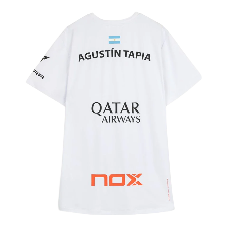 La camiseta oficial NOX Sponsors AT10 White es la equipación principal diseñada para el circuito profesional, utilizada por Agustín Tapia en competición.