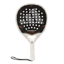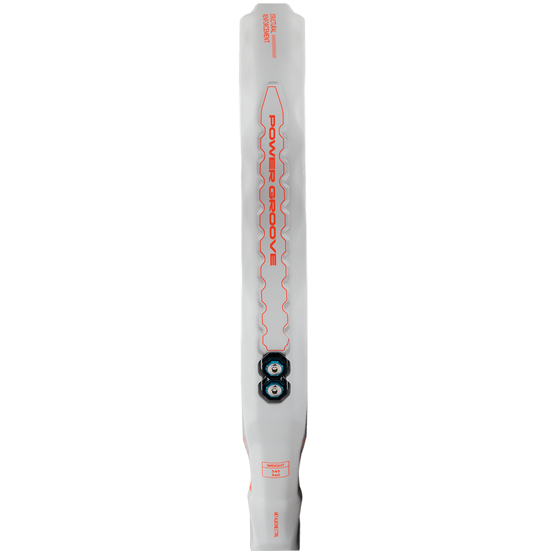 El rail Power Groove integrado en el perfil refuerza la estructura y amplifica la potencia en cada impacto. La goma EVA de baja densidad Soft Performance (identificable por su tapón negro) garantiza una excelente salida de bola y máxima comodidad durante el juego. La construcción en Carbono Aluminizado 16K combina rigidez extrema con durabilidad superior, ofreciendo un tacto sólido y directo que permite a jugadores agresivos aprovechar toda su potencia sin compromisos.