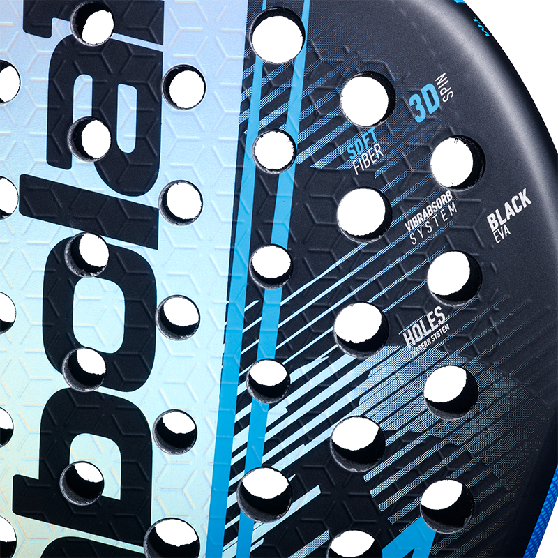 Esta pala de pádel Babolat combina su estructura flexible de fibra de vidrio y su diseño aerodinámico que facilita una salida de bola rápida y explosiva, sin la necesidad de un esfuerzo excesivo.