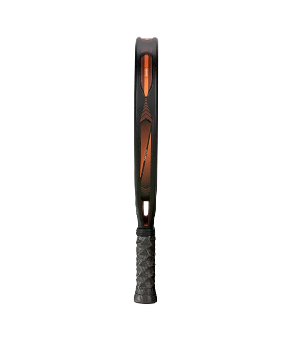 Pala Bullpadel VERTEX 04 2025, la pala de Juan Tello, una arma de potencia, aerodinámica y manejable. La Vertex 04 destaca por su construcción con X-Tend Carbon, un material avanzado de 12K filamentos de carbono entrelazados que aportan maniobrabilidad. El núcleo ha sido diseñado con una estructura tipo "sándwich", compuesta por tres capas de EVA (Etileno-Vinil-Acetato) de distintas densidades, dos exteriores de mayor densidad y una interior más blanda.