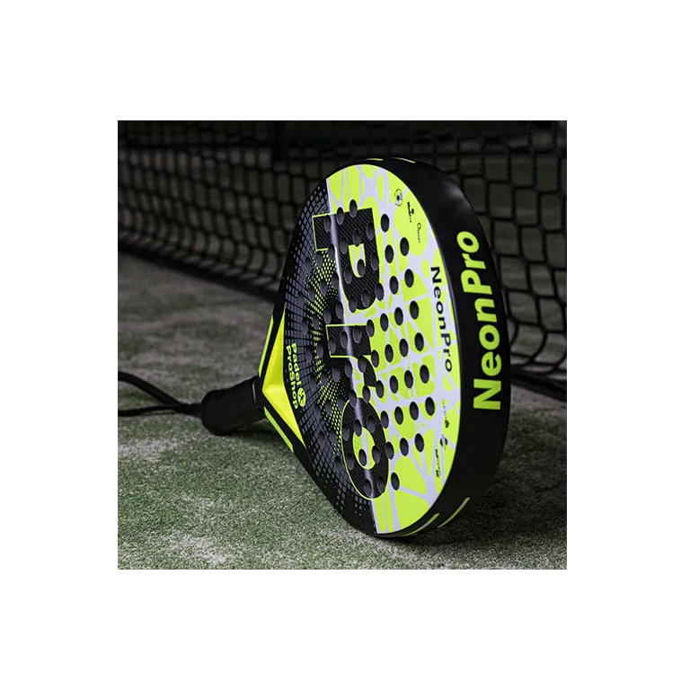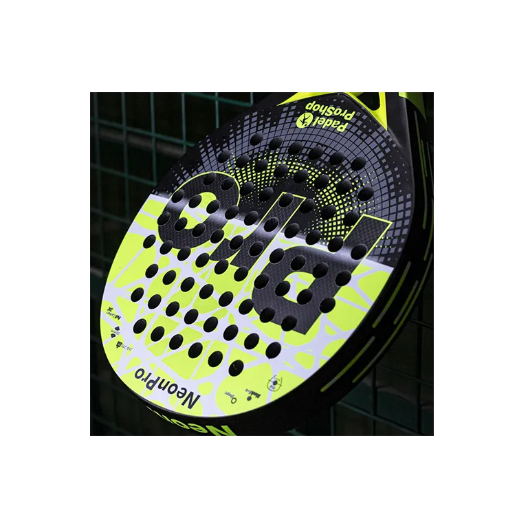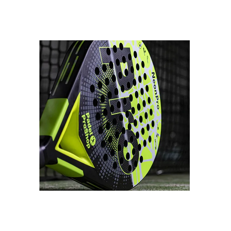 La pala Neon 3k tiene forma redonda, con un punto dulce amplio y aunque es una pala con balance bajo, pensada para ser de control, no renuncia a una gran potencia debido al carbono y la goma utilizadas en sus caras.