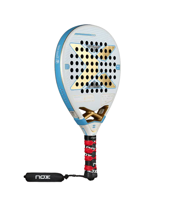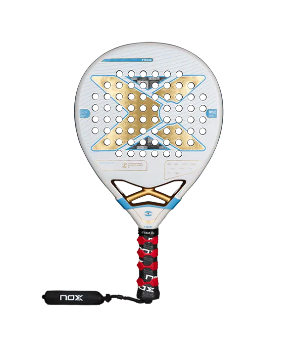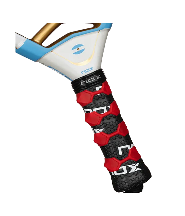 La pala Nox AT10 Luxury Genius 18K Alum Agustín Tapia Edición Especial Buenos Aires 2025 inspirada en los colores de la bandera argentina y diseñada para el Premier Padel Buenos Aires P1. Una edición limitada honra la conexión de Agustín Tapia con su tierra natal. Conserva la esencia técnica de la AT10 Genius 18K Alum, con carbono 18K aluminizado que ofrece un tacto firme y constante ante variaciones térmicas, y un núcleo Multilayered Black EVA que asegura una respuesta óptima en defensa y ataque. Además, incorpora innovaciones como el sistema Smartstrap® intercambiable para mayor comodidad y seguridad.