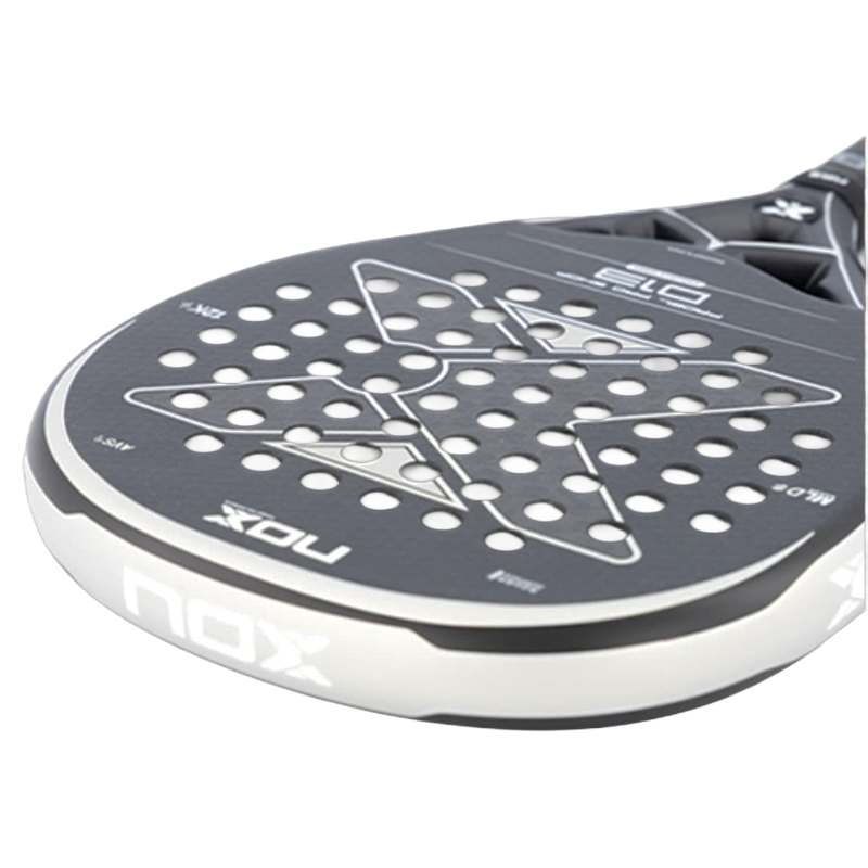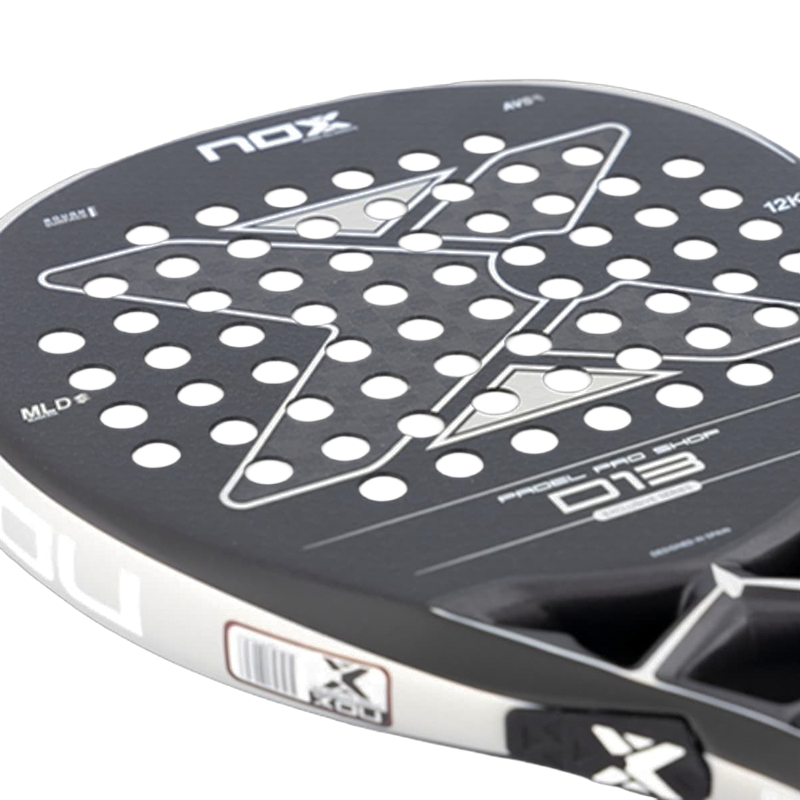 La pala NOX D13 12K 2025, la pala exclusiva de PadelPROShop del conocido creador de contenido Dani13. La D13 está construida con Carbono 12k y cuenta con goma MLD Black EVA multicapa y un balance medio de 26,2cm. Además, su dureza medio/dura y sistema de cambio de cuerda aportan una jugabilidad óptima.