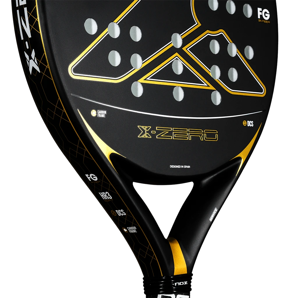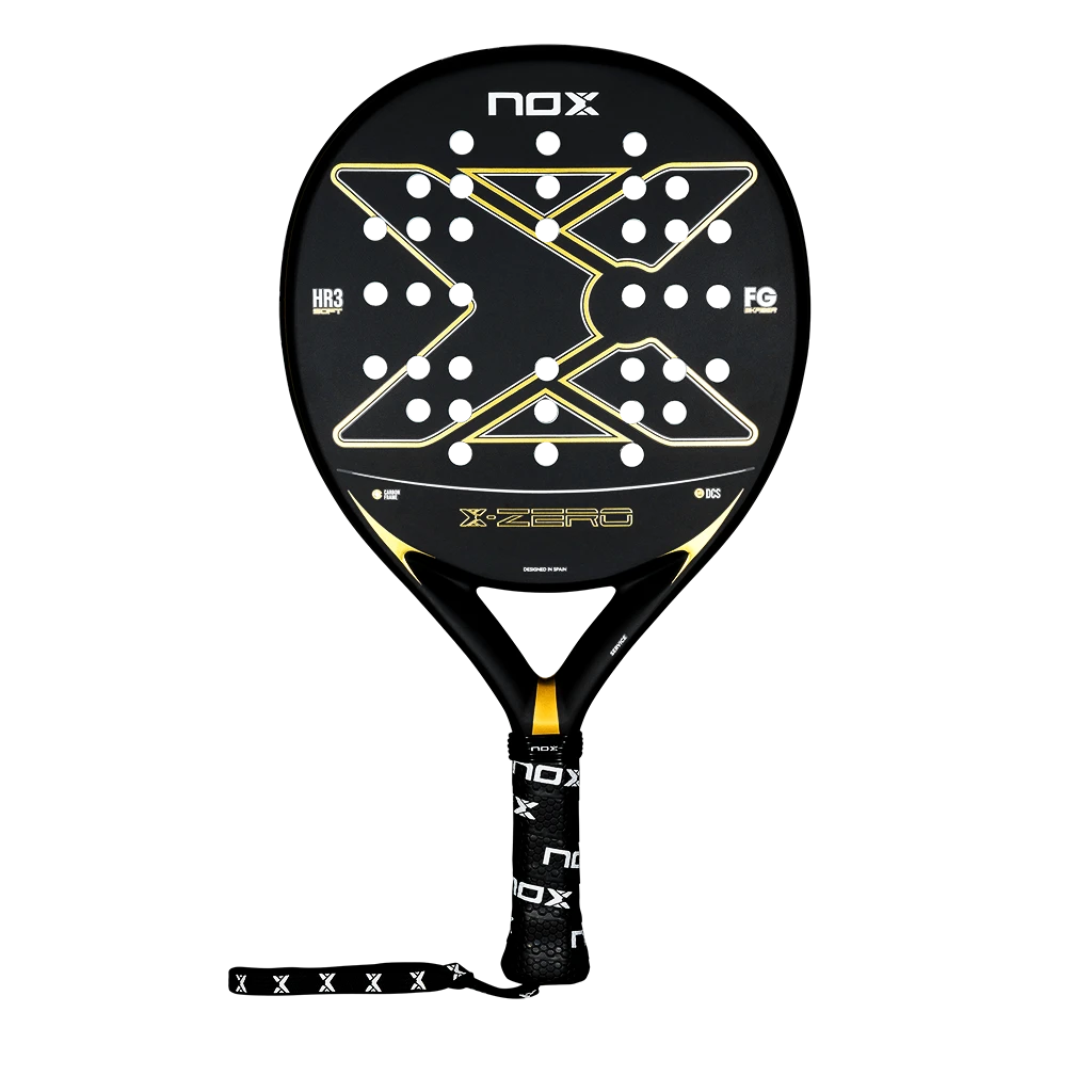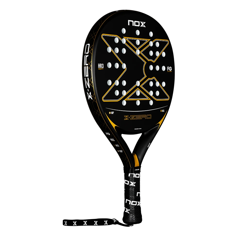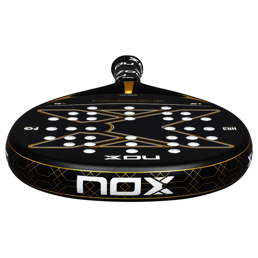 Pala de pádel Nox X-Zero Gold en exclusiva combinación negro-oro. Diseñada para jugadores que buscan potencia y control en cada golpe.