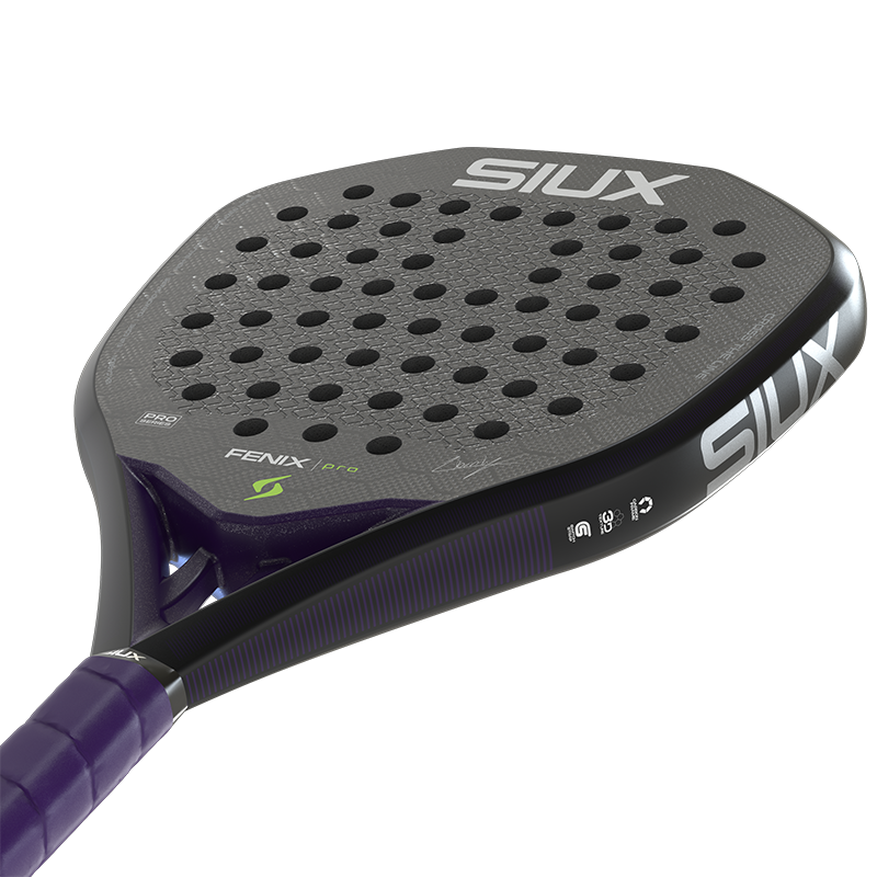 La Siux Fenix Pro Black  2026 es una pala de potencia pura diseñada para el jugador profesional de ataque. Su forma diamante concentra la masa en la zona alta, generando aceleración máxima en cada remate. Las caras de carbono 12K transmiten energía sin pérdidas, mientras el núcleo de EVA proporciona la rigidez necesaria para golpes explosivos.
