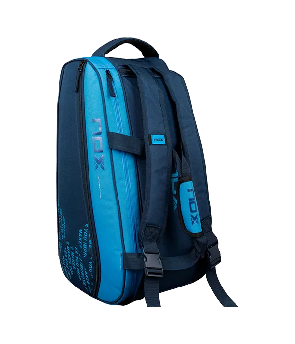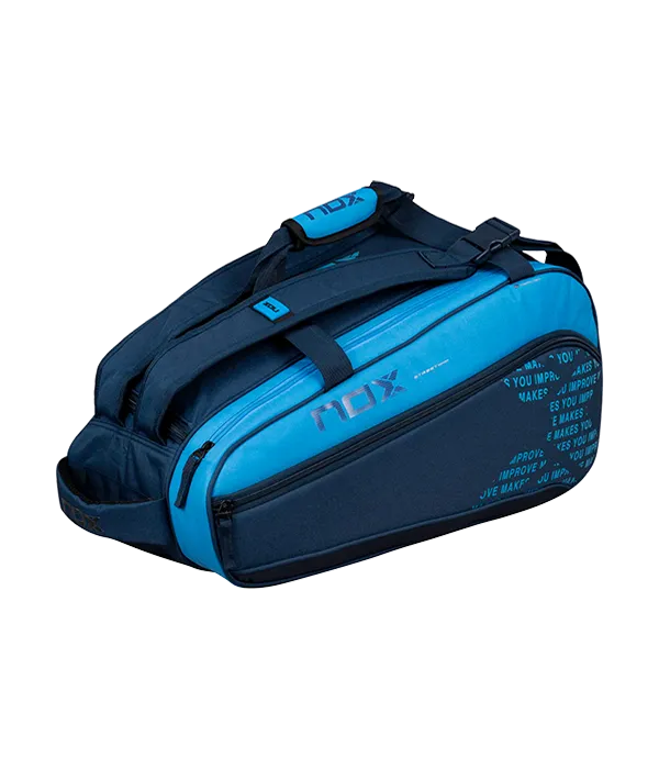 Paletero NOX Street Azul con un amplio compartimento principal de apertura lateral l con capacidad para 3 palas de pádel, ropa y más accesorios. Además, el compartimento térmico ThermoTech para almacenar 2 palas más. Incluye también un compartimento aireado para almacenar calzado.  Base rígida que garantiza la protección del material.