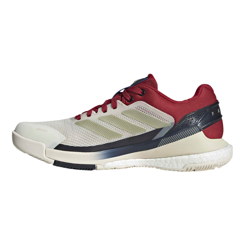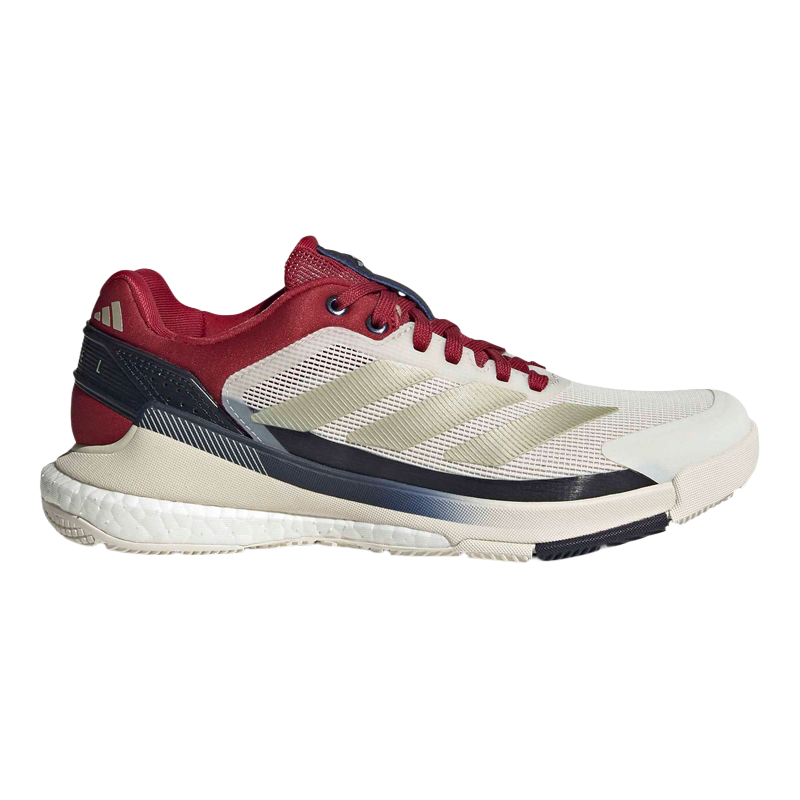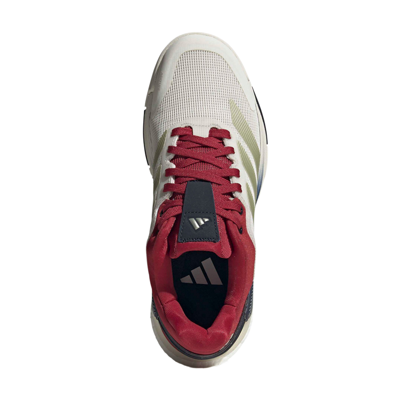 Las Zapatillas Adidas Crazyquick Chalk White/Ice Gold/Team Victory Red, diseñadas con un diseño optimizado para ejecutar movimientos rápidos y precisos en la pista de pádel.