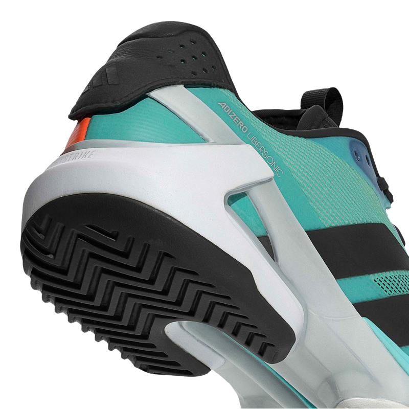 Zapatillas Adidas Adizero Ubersonic 5 en azul celeste, diseñadas para jugadores que priorizan la velocidad y la reactividad. Su construcción ultraligera potencia movimientos ágiles y precisos, permitiéndote dominar cada intercambio con anticipación y control. El empeine de malla reforzada combina transpirabilidad excepcional con sujeción envolvente, adaptándose perfectamente al pie durante desplazamientos explosivos. Ideal para jugadores que imponen ritmo desde el primer punto y buscan una ventaja competitiva en la cancha.
